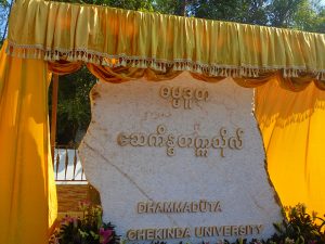 First the entry gate of DSU was opened by Union Minister for Religious Affairs and Culture Thura U Aung Ko, Department of Religious Affairs Director General U Myint Oo and donors by cutting the ceremonial ribbon, unveiled the stone pillar and sprinkled scented waters on it.