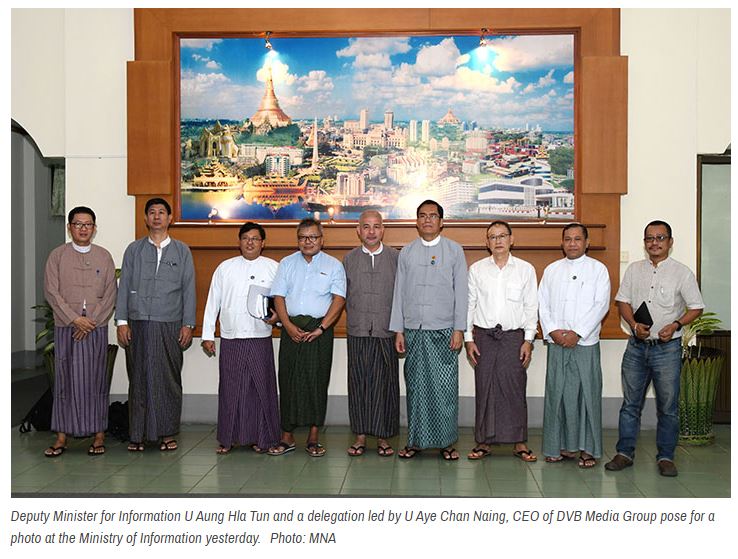 Deputy Minister for Information, U Aung Hla Tun, received U Aye Chan Naing, CEO of DVB Media Group, and his entourage at the Ministry of Information in Nay Pyi Taw yesterday morning.