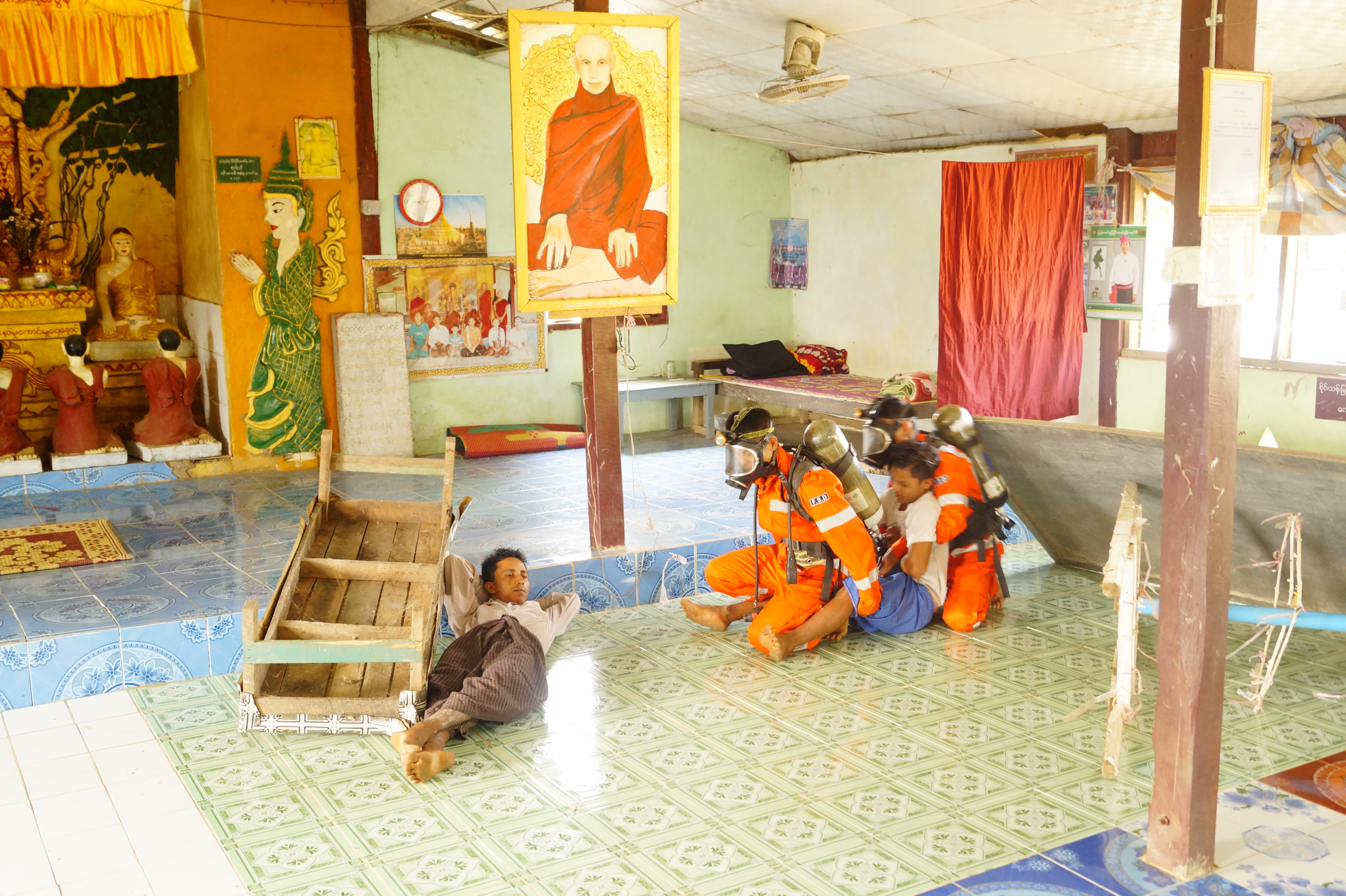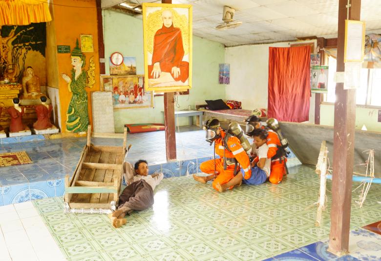 The Fire Services Department conducted an earthquake drill in a monastery in Hwaynaung Village, Hpa-an in Kayin State this morning.