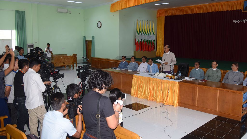 At the press conference, Deputy Minister for Education U Win Maw Tun explained about the ministry’s action on the protest.