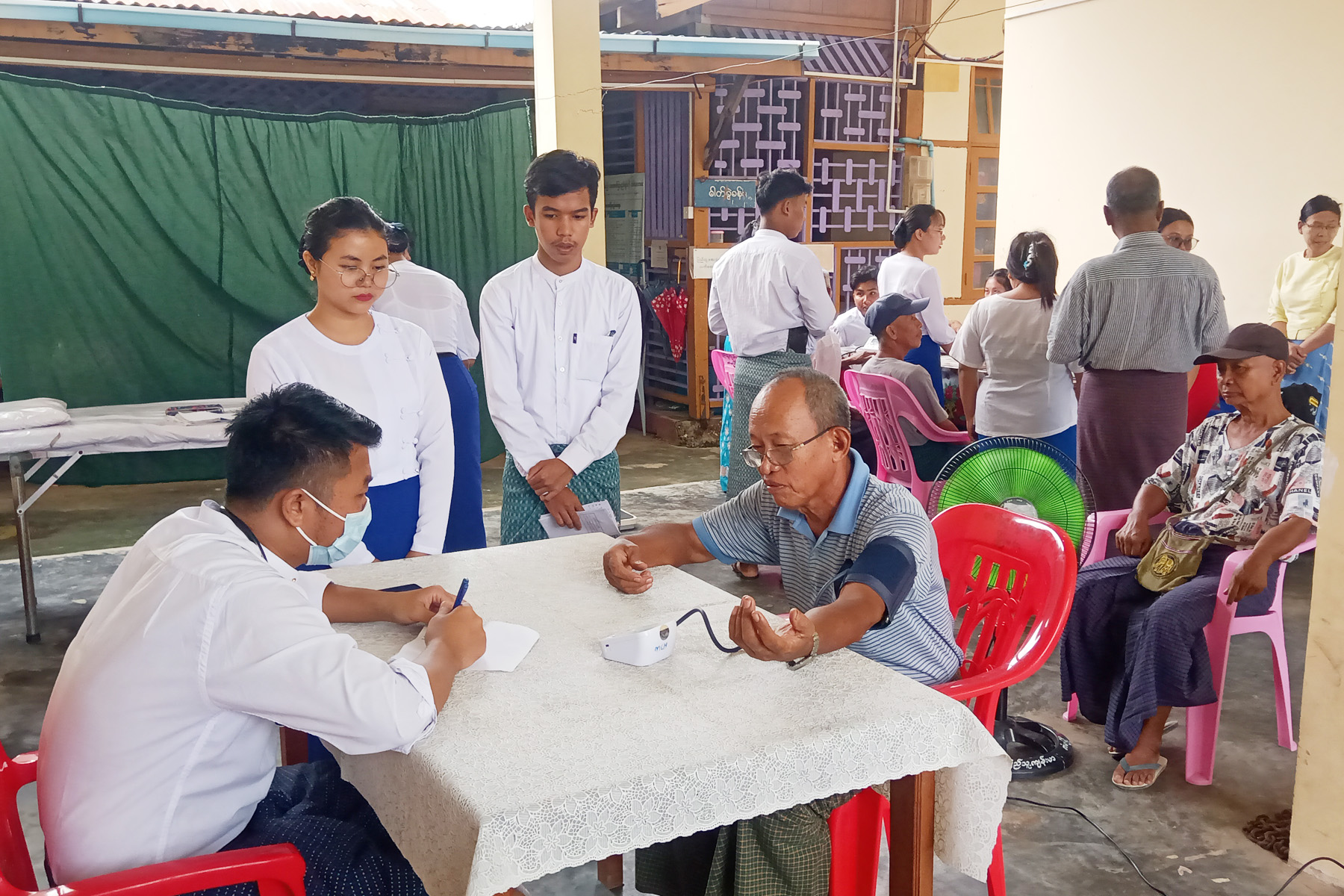 Free medical checkups and treatment were provided today for elderly citizens aged 85 and above, as well as retired government employees, at the People’s Hospital in Kamma Township, Magway Region. The program commenced at 10:00 a.m.