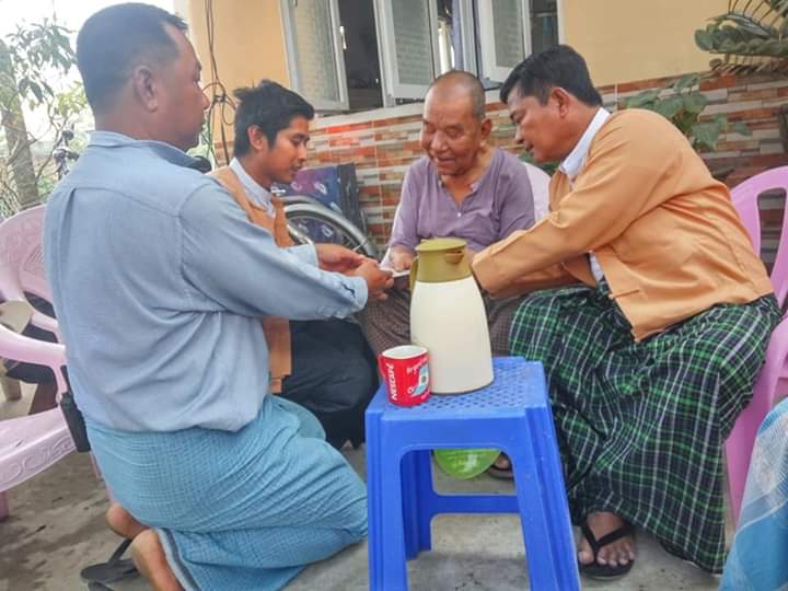 Pyithu Hluttaw representative U Mya Sein and Yangon Region Hluttaw representative U Zin Min Htway made a domiciliary visit to disburse social pension in Ward-68, Dagon Myothit (Seikantha) Township, Yangon east district, Yangon Region this morning .  They gave K 30000 each to the elderly above 85 years of age.—Thein Soe (Township IPRD)
