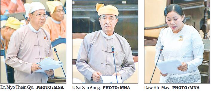 Asterisk-marked ques-tions covering education re-lated matters including up-grading of schools, Myanmar’s hosting of 19th ASEAN Uni-versity Games and participa-tion in earlier 18 Games were asked by U Sai San Aung of Shan State constituency 12, Daw Htu May of Rakhine State constituency 11, U Kyaw Toke of Mandalay Region constitu-ency 7, U Hla Myint @ U Hla Myint Than of Mon State con-stituency 11, U Htein Win of Ay-eyawady Region constituency 4, U Naing Thiha of Mon State constituency 7 and U Zon Hle Htan of Chin State constituen-cy 4 were answered by Union Minister for Education Dr. Myo Thein Gyi.