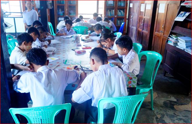 Firstly, an official from the township IPRD clarified the purpose of the competitions. Altogether 60 students from Phapon Basic Education Department including 30 students in painting competition and 30 students in essay completion competed in the competitions.