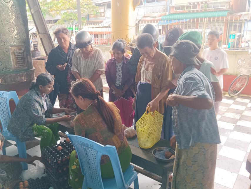 In an effort to help stabilize local market prices, essential food items were sold at affordable rates this morning at Myole Monastery in Ward 4, Maubin Township, Ayeyarwady Region.