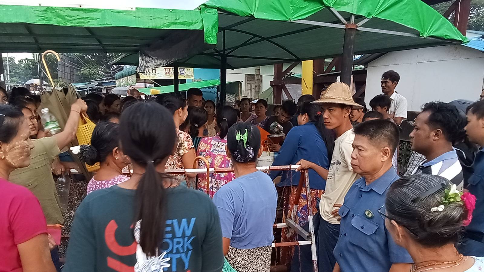 In order to stabilize commodity prices, essential foodstuffs were sold at lower prices for the convenience of the residents at the Mingalar Market in Kada Ward in the town of Paung, Mon State.