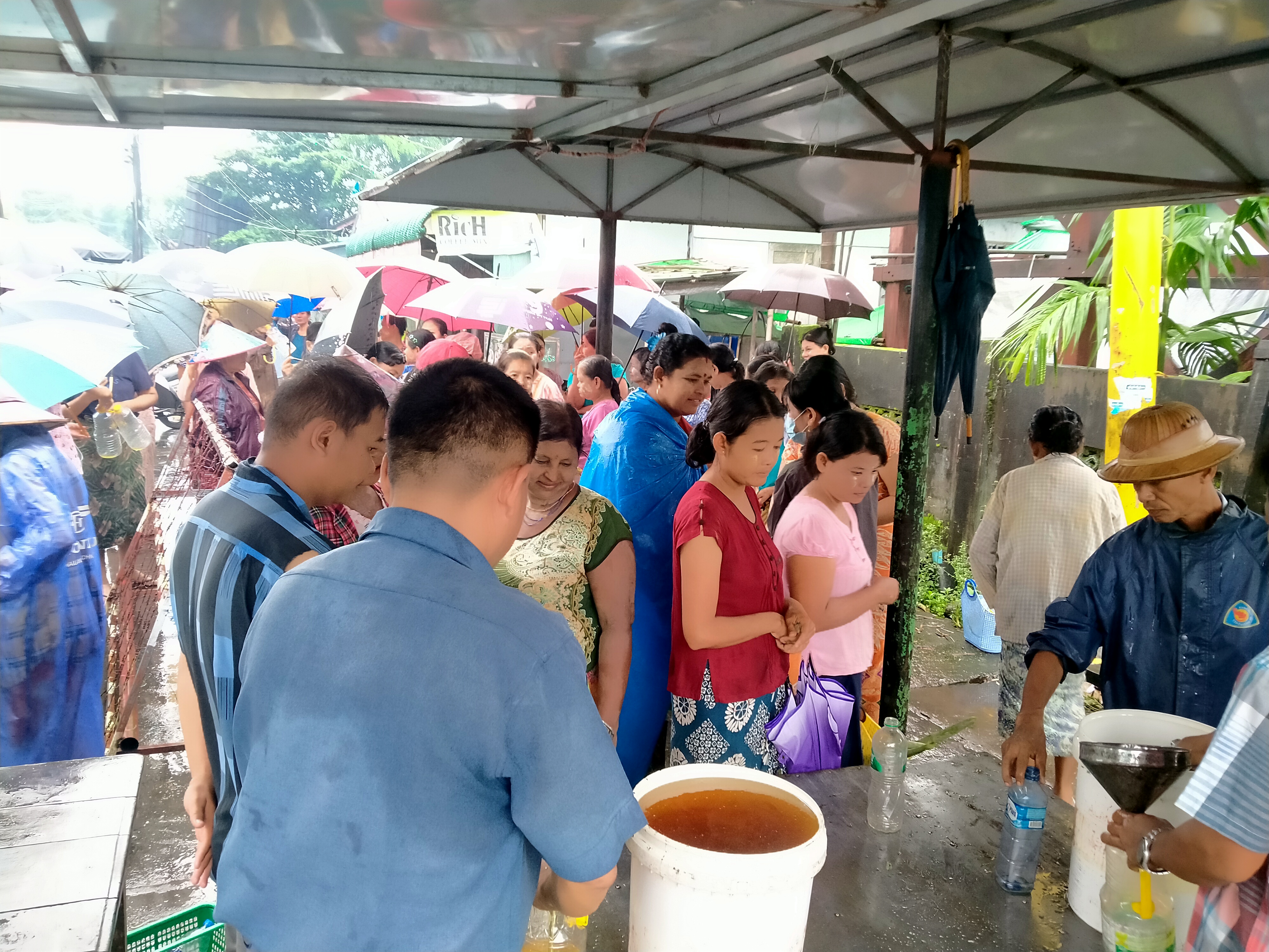 The sale was organized under the leadership of the Township Management and Administration Committee to help ease the cost of living for local residents. Items included four eggs for K1,500 and palm oil at K6,338 per viss. These essential goods will continue to be made available at subsidized rates.