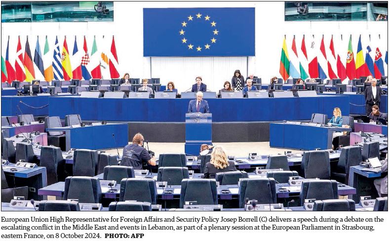 “There is nothing that could ever justify the indiscriminate mass murder, rape, kidnapping and torture that occurred a year ago.” Metsola also addressed relatives of hostages taken by Hamas who were present in the parliament building. — AFP
