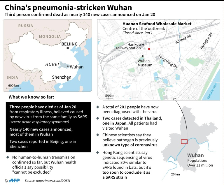 The virus -- a new strain of coronavirus that humans can contract -- has caused alarm because of its connection to SARS (Severe Acute Respiratory Syndrome), which killed nearly 650 people across mainland China and Hong Kong in 2002-2003.