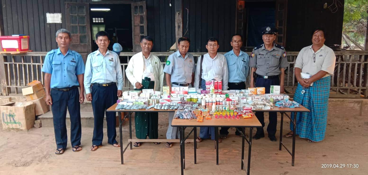 Officials from the Department of Comsumer Affairs under under the Ministry of Commerce destroyed prohibited food and expired medicine in its office compound in Katha Township, Sagaing Region yesterday evening.