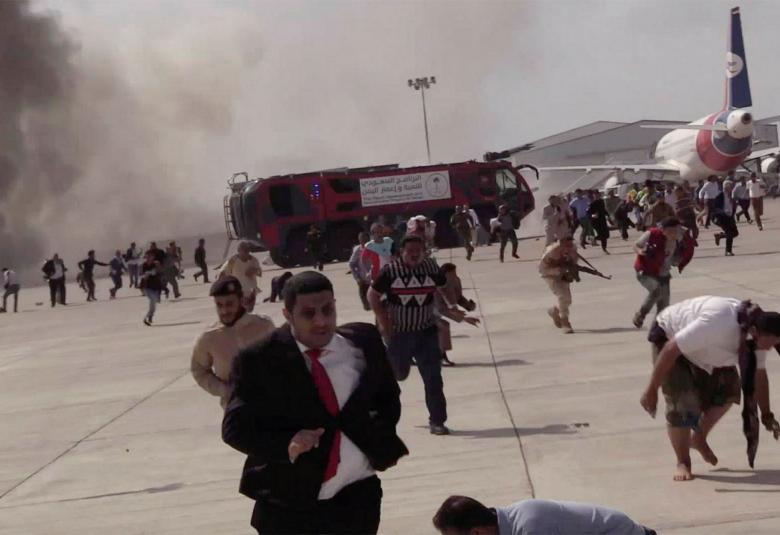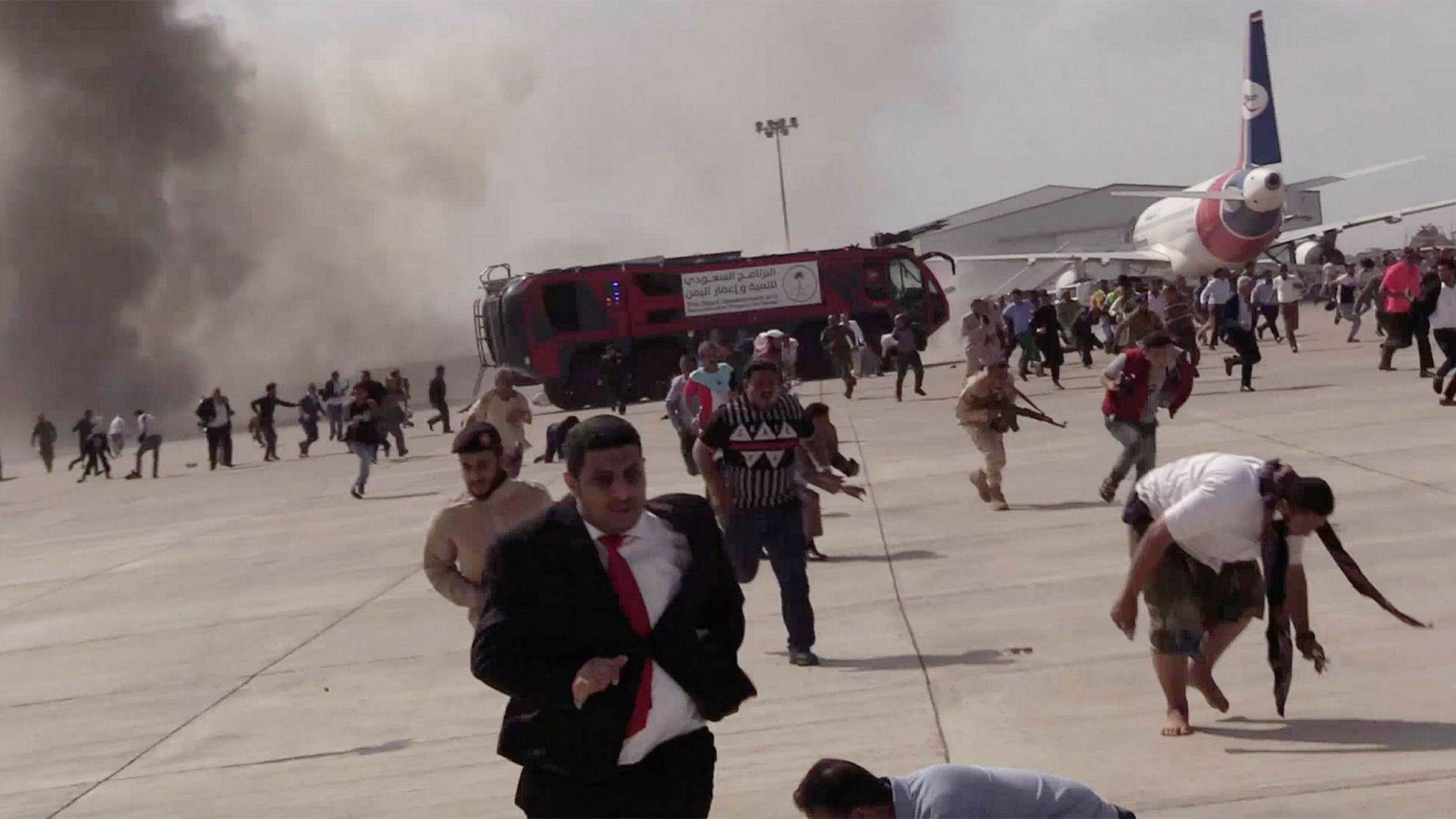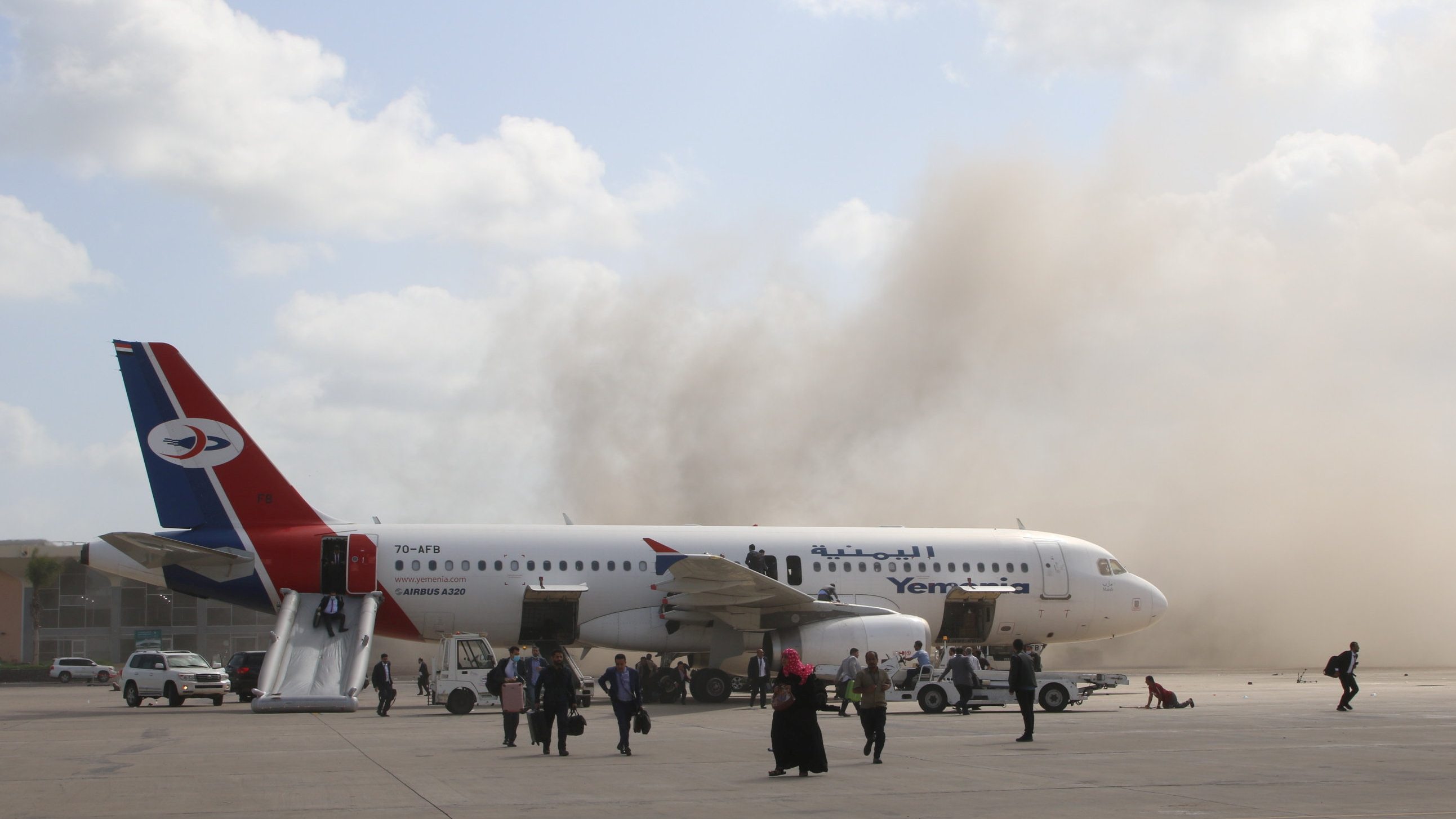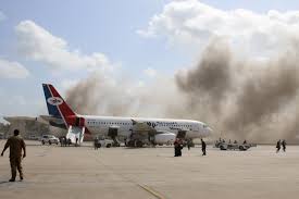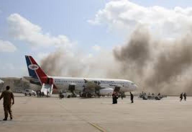 A series of blasts rocked the international airport in the city of Aden on Wednesday, moments after the cabinet members arrived from Saudi Arabia.