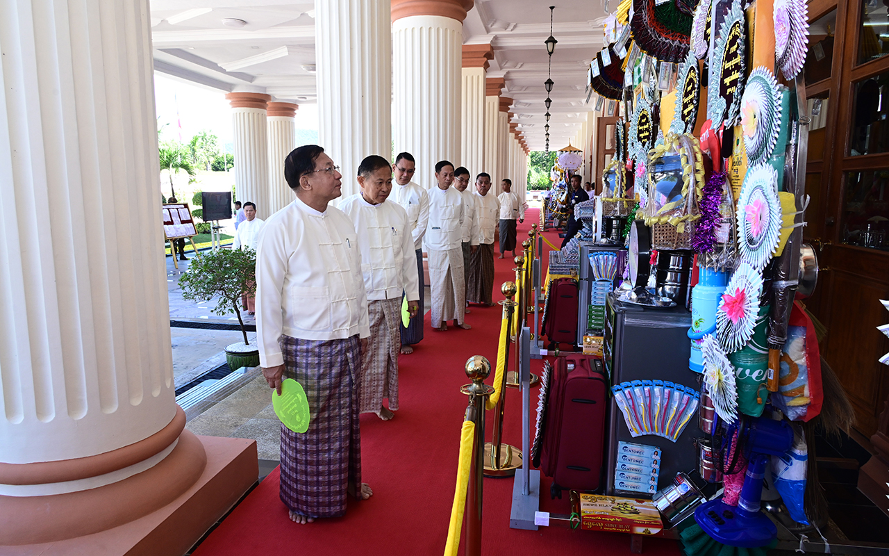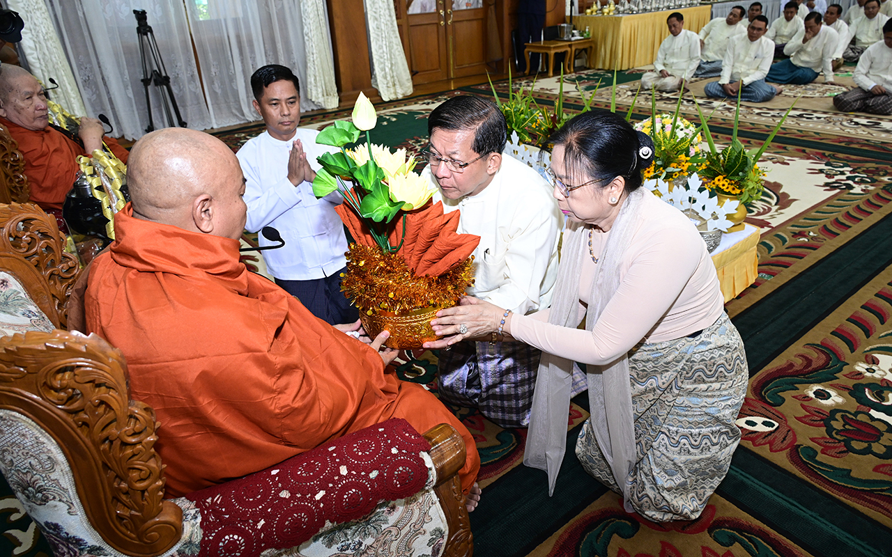 The Union-level dignitaries and their wives, the Commission member and Chief of the General Staff (Army, Navy and Air) and his wife, senior Tatmadaw officers from the Office of the Commander-in-Chief and their wives donated Kathina robes and offerings to members of the Sangha, respectively.