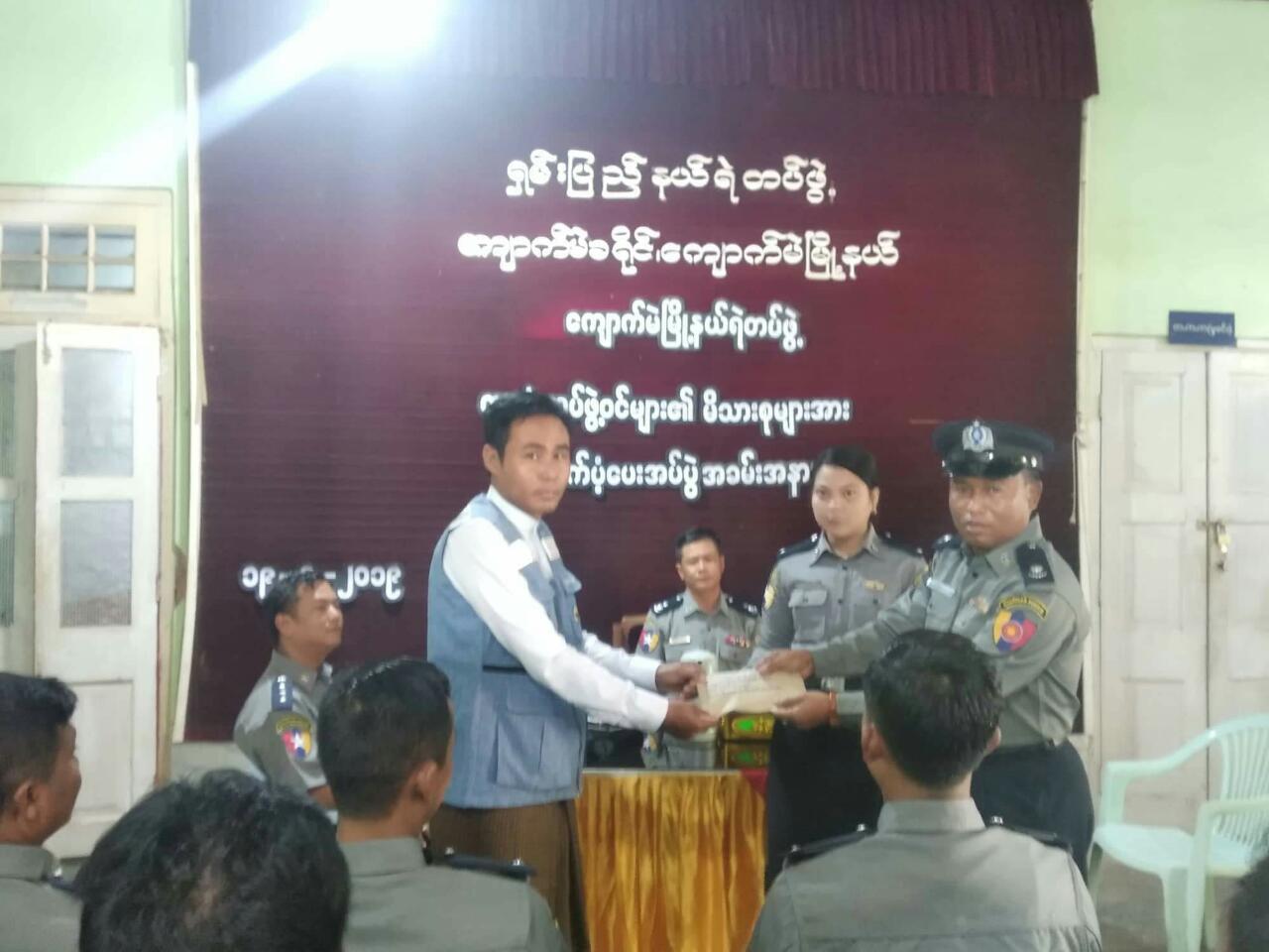 At the event, U Thein Win Tut, head of the district DMD provided  K 300000 each to the family units of three policemen who were killed in the ambush at Gotetwin bridge police outpost on August 15.