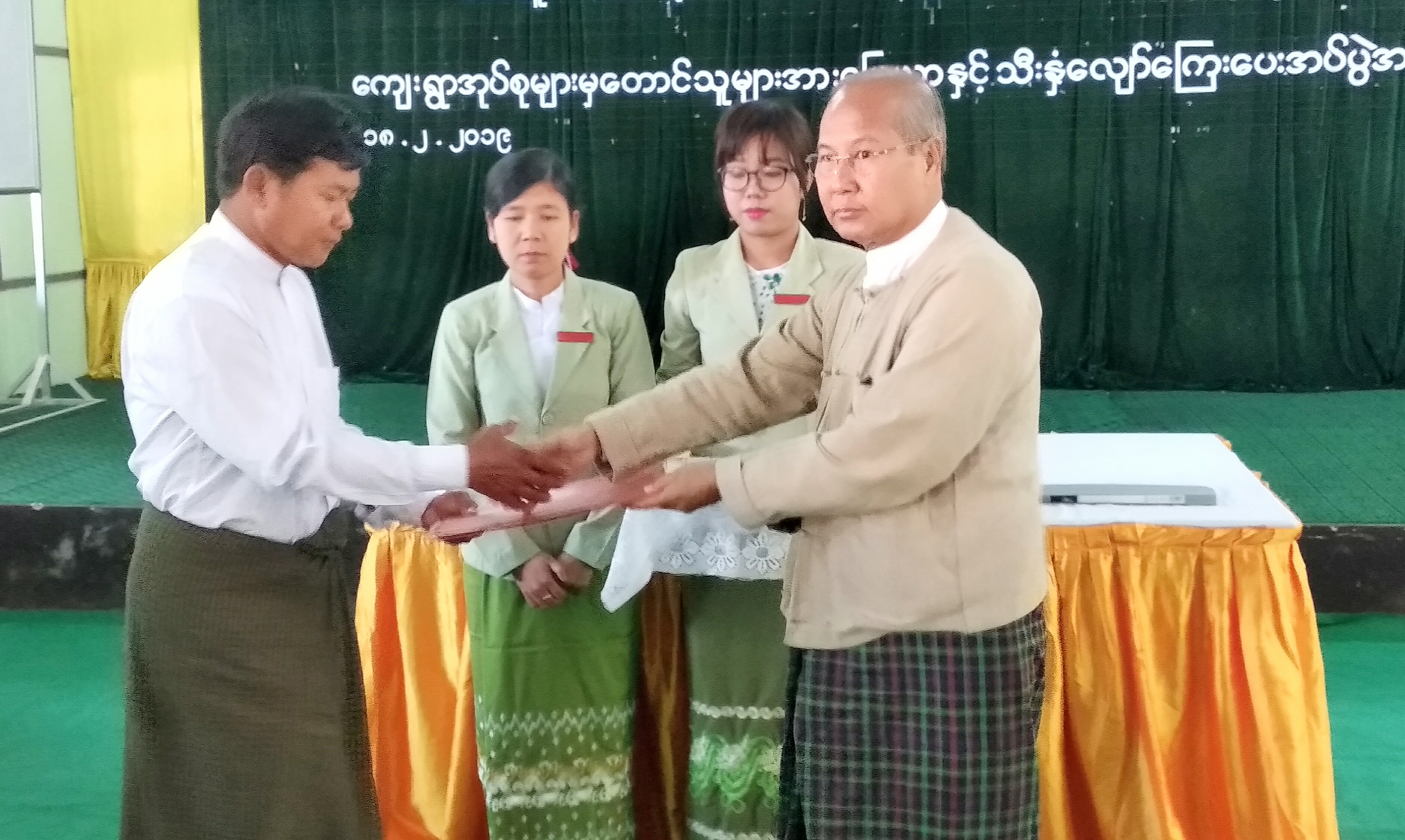 The deputy commissioner then presented Ks. 381.3147 million for 118.83 acres of farmlands owned by 97 farmers from two village-tracts whose farmlands were confiscated when the Minbu-An-Sittway Railroad was built. On behalf of the farmers, U Tun Aye expressed his delight for accepting land compensation.