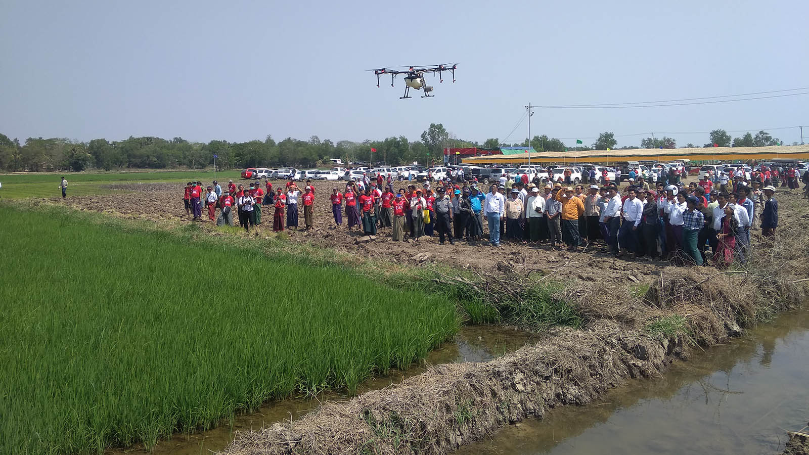 Next, the Chief Minister and officials observed a seed dispersal machine and aerial spraying drones in action. By the end of 2019, a total of 8,992 acres have been handed over to farmers in the Ayeyawady Region along with work permits. Yesterday’s ceremony saw 2,965 acres handed over to 639 farmers along with permits. In addition, more than 3,000 farmers from 26 townships of the region were present at yesterday’s event. — Thi Thi Min, Min Thit