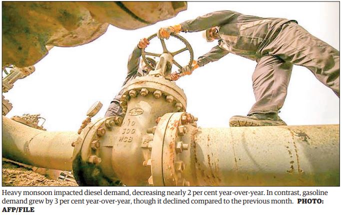 “This (heavy monsoon) particularly dampened diesel demand, which fell nearly 2 per cent compared to the previous year. However, gasoline demand remained resilient, growing by 3 per cent year over year, although it was down from the previous month,” Srivastava said.