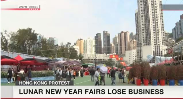 The number of shoppers visiting Lunar New Year flower fairs in Hong Kong has declined sharply as anti-government protests continue.