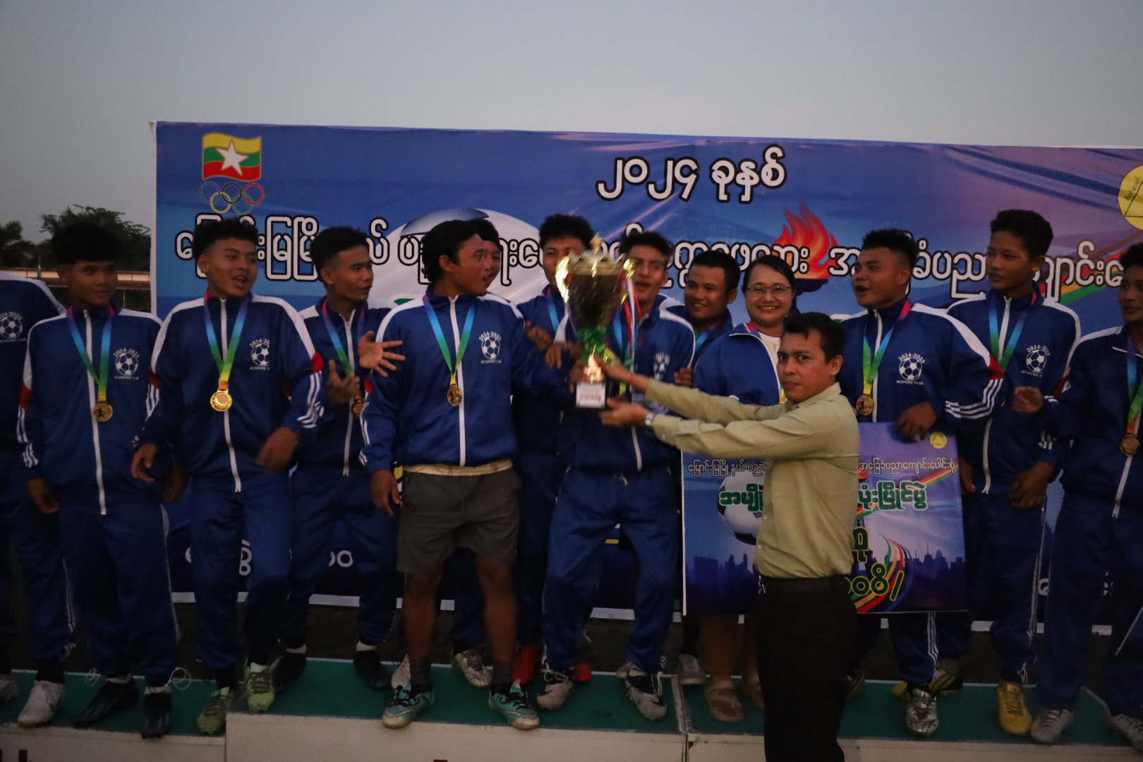 At the award-giving ceremony, Chairman of the Township Administration Body U Naw Maing Hla Kyi presented the champion trophy to Sakhankyi B.E.H.S. team. Afterwards, officials presented first prize, second prize, third prize and best player award to relevant teams and players respectively.
