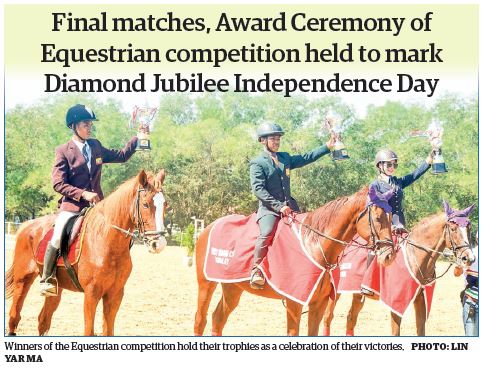 To hail the 75th Anniversary (Diamond Jubilee) Independ­ence Day, the final games of the Myanmar Equestrian Federation President’s Cup Equestrian Competition were held at the Myanmar Eques­trian Federation Ground in Dagon Myothit (North) Town­ship yesterday.