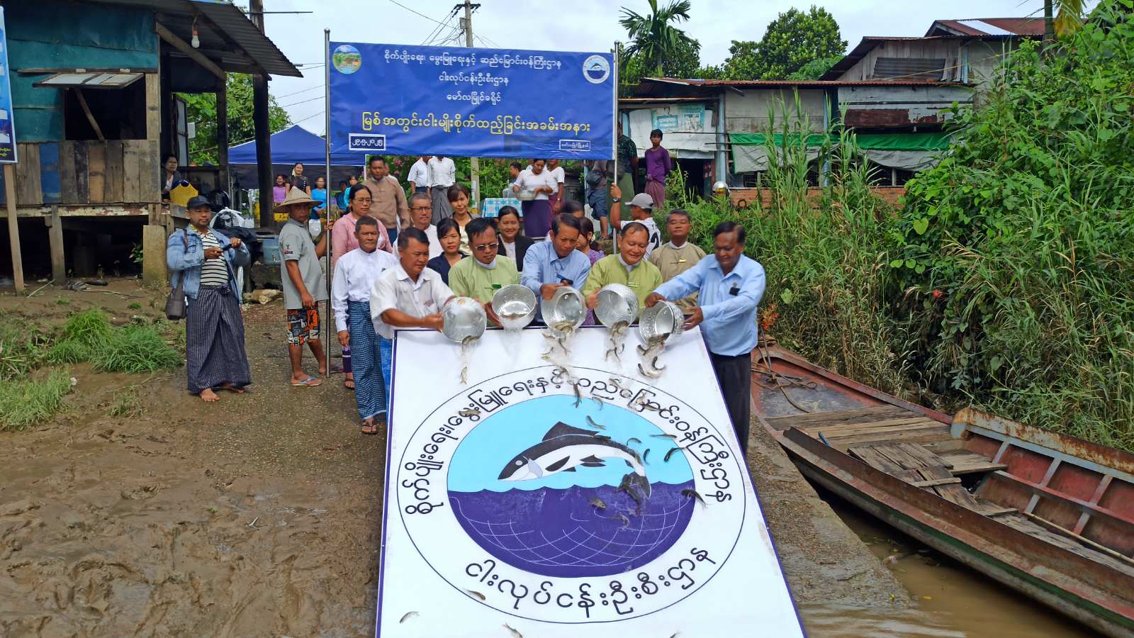 The event was attended by U Htun Wai, Chairman of the District Administration Body, and member U Kyaw Myint, U Hla Min Zaw, head of the District Fisheries Department, along with staff, U Aung Win Naing, Chairman of the Township Administration Body, district and township-level departmental officials, members of the District and Township Fish Releasing Supervisory Committees, representatives from the District and Township Women’s Affairs Federation and the Maternal and Child Welfare Association, the Ward Administrator and local fishermen.
