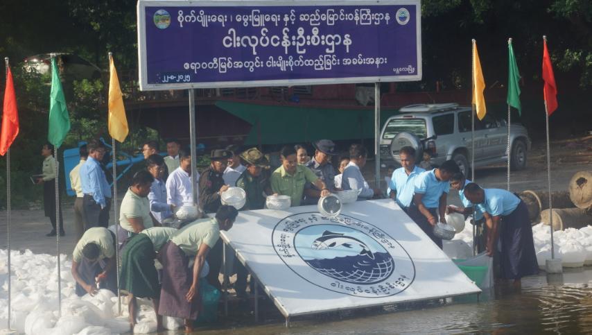 A fish restocking event was held at 8 a.m. this morning at Alandaing Port, near Panchan-2 in Shwe Kyet Yet Village Tract, Amarapura Township, Mandalay Region, as part of efforts to replenish fish stocks in the Irrawaddy River.