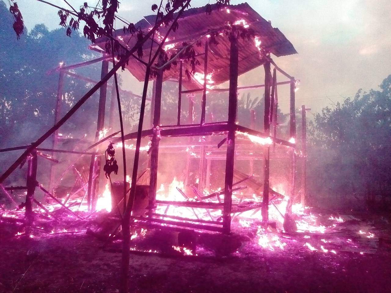 The fire started from the house of U Arkar at 6:30 pm when electric wires strung above his house became getting in touch with each other due to high winds, producing sparks that fall onto the roof of the house. The fire spread to a nearby house that belonged to U Pan San, totally destroying the two houses.