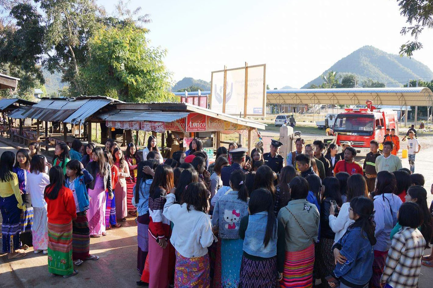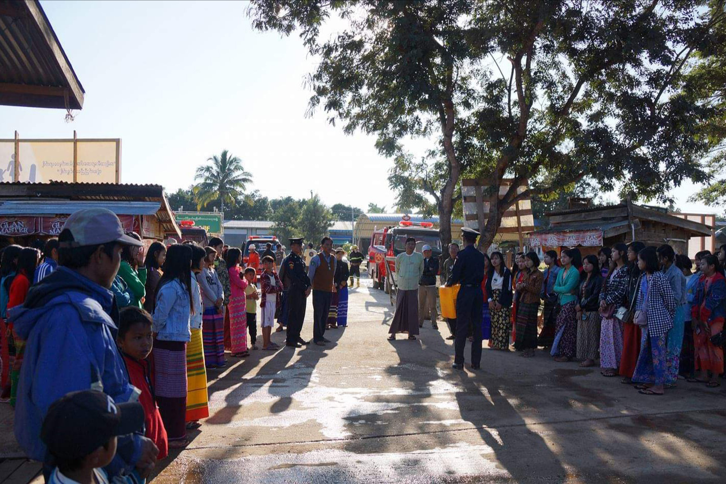 The event was jointly organized by the Fire Services Department and Myanmar Red Cross Society. At first, the deputy commander of the township fire brigade disseminated knowledge about the risks of fire. Next, firefighters explained fire safety measures and demonstrated how to use fire extinguishers when a fire breaks out in the area. Afterwards, demonstrated how to use fire extinguishers and conducted the first aid drill by using fire engines, water tankers and fire extinguishers.