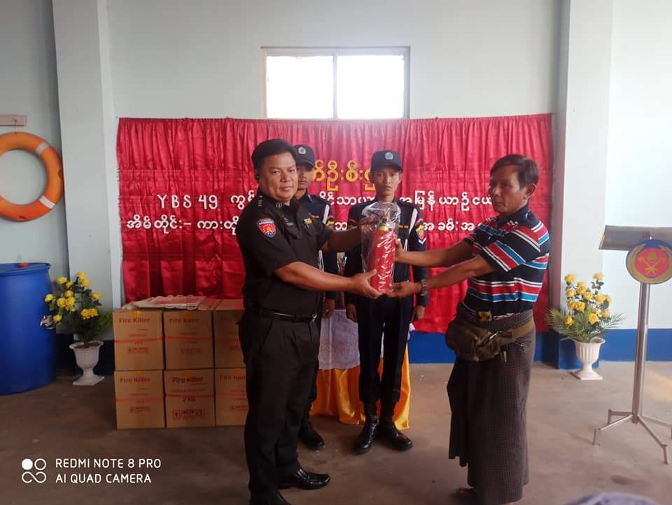 A ceremony to donate fire extinguishers to Yangon Minibus Services (YBS-49) which runs between Kungyangon and Hlaingtharya Townships in Yangon Region was held at the office of Fire Services Department in Kungyangon, southern district, Yangon Region yesterday evening.