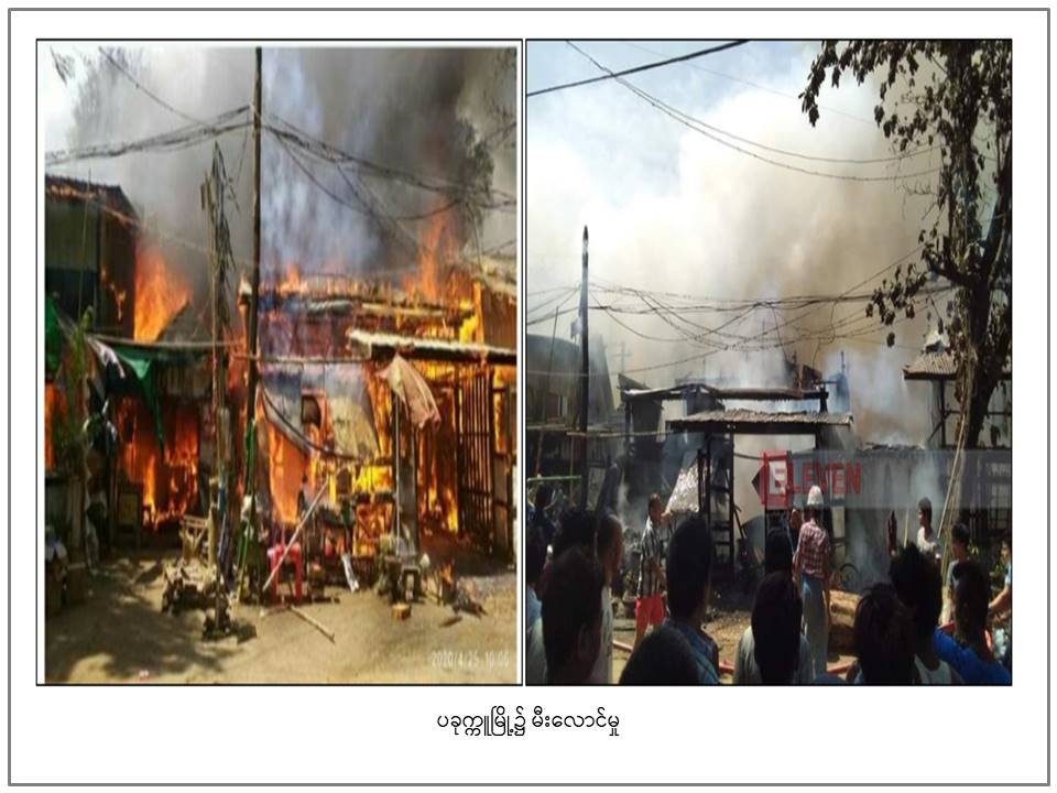 The fire broke out in a house of a woman identified as Daw Khin Sein on Thiri Marlar Lane, Ward-3 in Pakkoku at about 10 a.m. on 23 April. The fire was believed to have started from an overheated electric fan and spread nearby packets of blankets. Local firefighters rushed to the scene of fire along with 23 fire engines and took about 35 minutes to completely put out the flame.