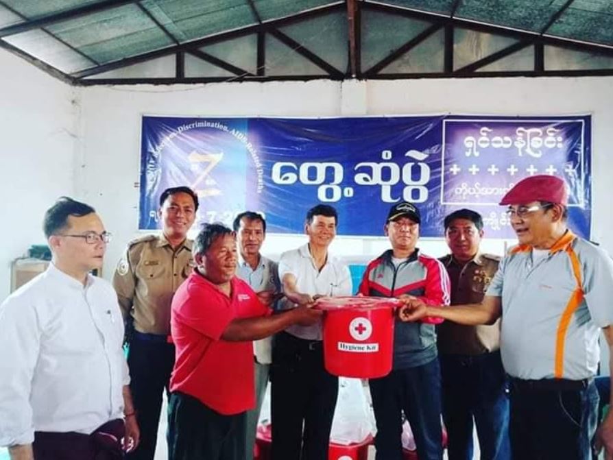 Staff from the Department of Disaster Management and the MRCS provided the fire victims from five households with relief items such as construction materials, rice and family kits.—Aung Zin Myint (IPRD)