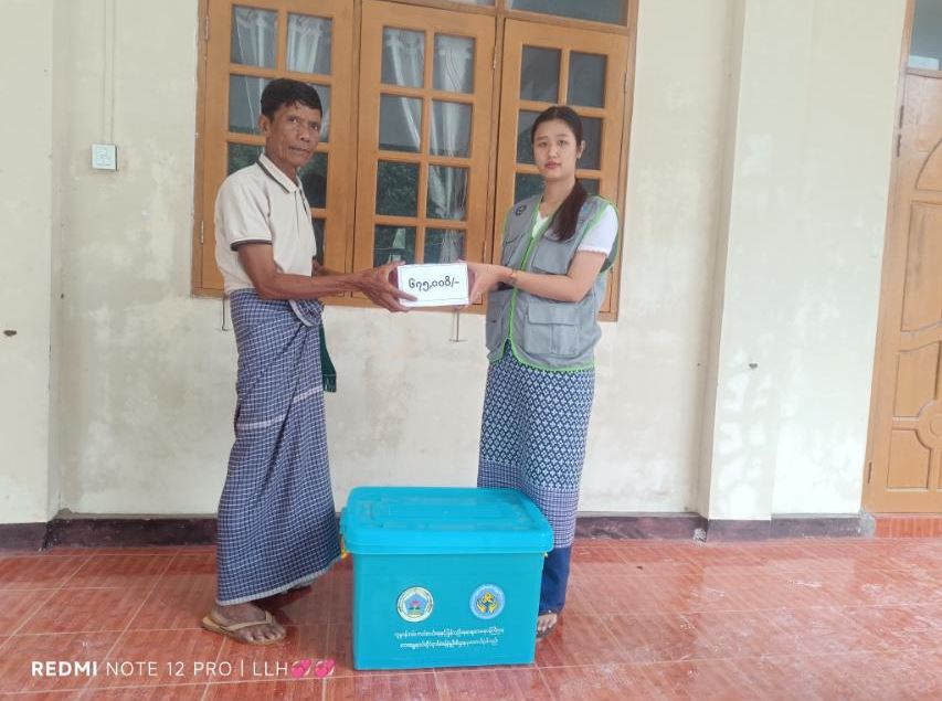 On behalf of the affected families, Village Administrator U Kyaw Shwe accepted Ks 600,000 for construction materials, Ks 75,000 for food rations, and additional relief supplies worth Ks 475,724.— Mon Ma Lay (IPRD)