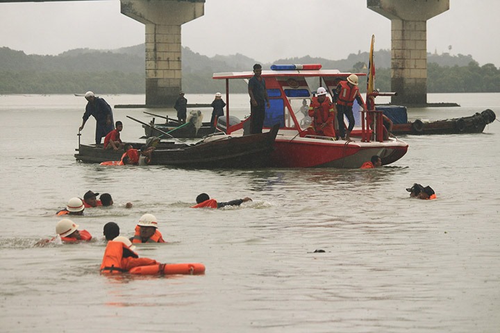The drill was conducted in Kyaukphya river near Kyweku village by the members of search and rescue teams from the district fire services department, auxiliary fire fighters, Red Cross Society, Myanmar Police Force, philanthropic associations, village administration and residents with the supports of four fire engines, one rescue vehicle and one vessel, a commanding vehicle and six emergency cars.