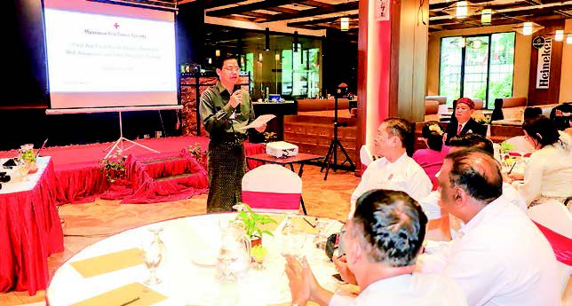 ACCORDING to the Myanmar Red Cross Society (MRCS), the First Aid Focal Person Review Meeting and the Risk Awareness and Safer Behav­iours Training were jointly organized by the Myanmar Red Cross Society and the International Committee of the Red Cross at the Rose Garden Ho­tel in Mingala Taungnyunt Township, Yangon Region. The training was con­ducted in collaboration between the MRCS’s Department of First Aid and Risk Reduction and the ICRC, and took place from 25 to 27 June.