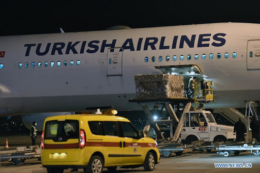 The Boeing 777 plane, which departed from Beijing with 17 containers of vaccines, landed at Esenboga Airport at 5.44 a.m. local time (0244 GMT).