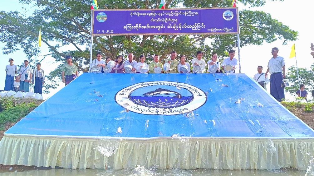 The ceremony aimed to enhance local fish stocks, support fish production, and contribute to food security in the Township. A total of 15,000 fingerlings, comprising 7,500 rohu and 7,500 swamp barbs, were released into the expansive waters of Kye Taing Lake.— Kyaw Zin Soe (IPRD)
