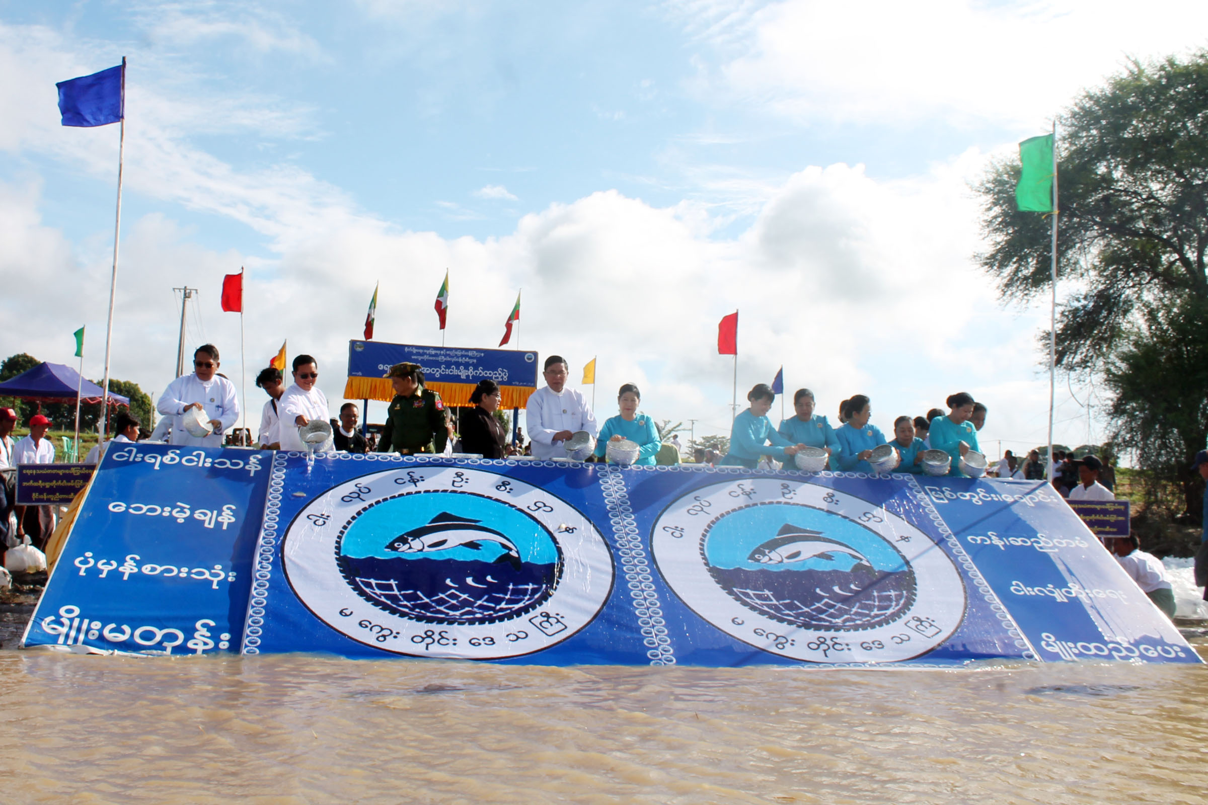 Chief Minister of Magway Region government U Tint Lwin, regional ministers, departmental heads and students attended the event and released 400,000 fingerlings including 200000 barbus fish, 150,000 carps, 50000 saffron carps into Irrawaddy River.