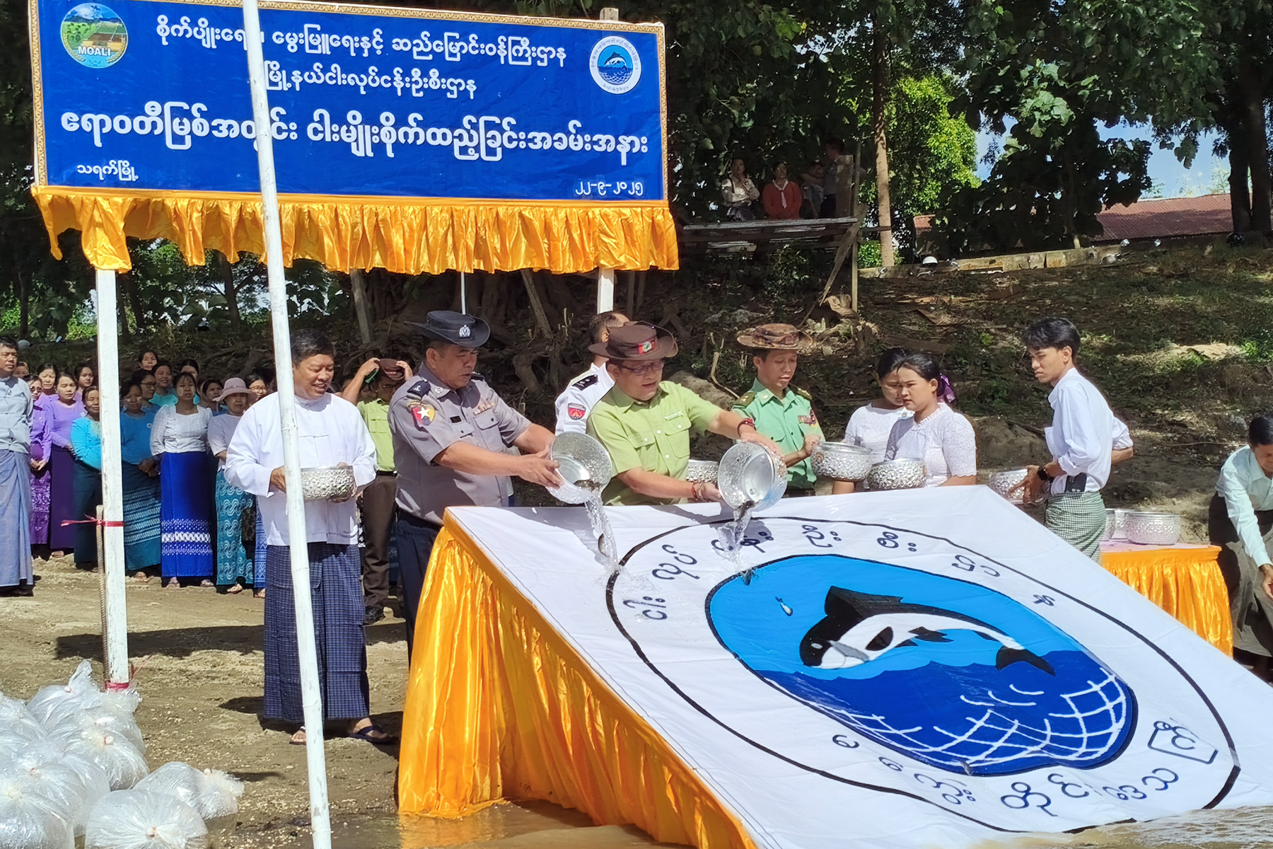 With the aims to enrich fish resources and achieve self-sufficiency in fish consumption, Township Department of Fisheries organized to release 200,000 fingerlings of different fish species into Ayeyawady River.
