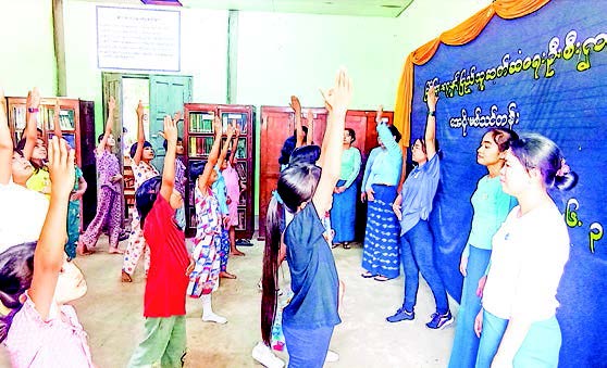 Following the speeches, Daw Nway Nway Khaing Zin conducted the training session especially the basic steps of fitness dance. The daily training runs from 18 to 26 March (9 am to 10 am), with 20 participants enrolled. — Maung Shwe Win (Pyay)/ KZL
