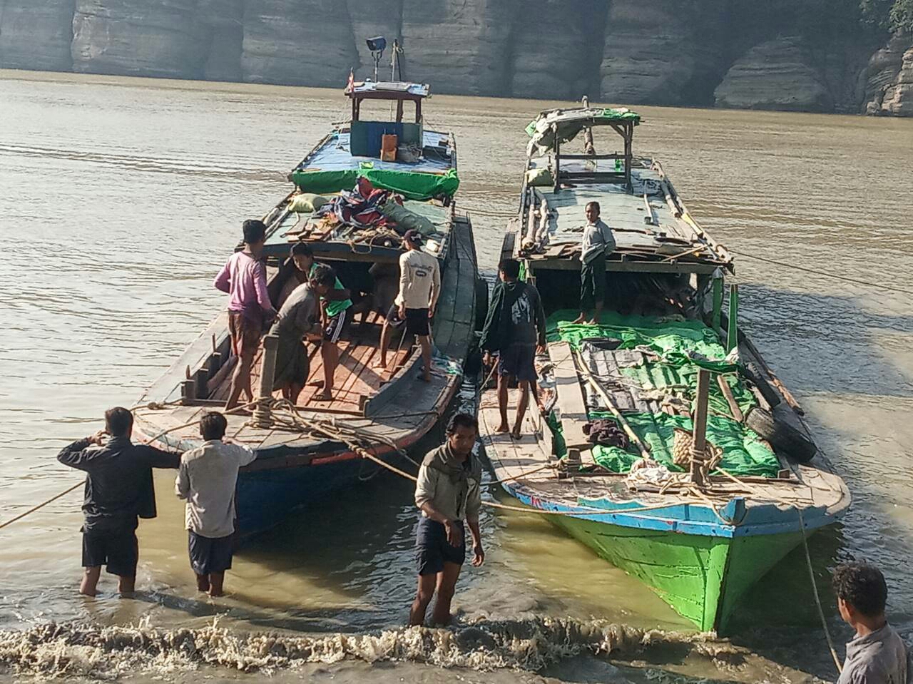 Four boats were anchored at the quayside of Shwe-Sayae village while one boat was half sunk at the quayside of Nyaung-Thu-Myar village. All boats were expected to sail from Kani Township to Monywa. The authorities are trying to retrieve the timber.
