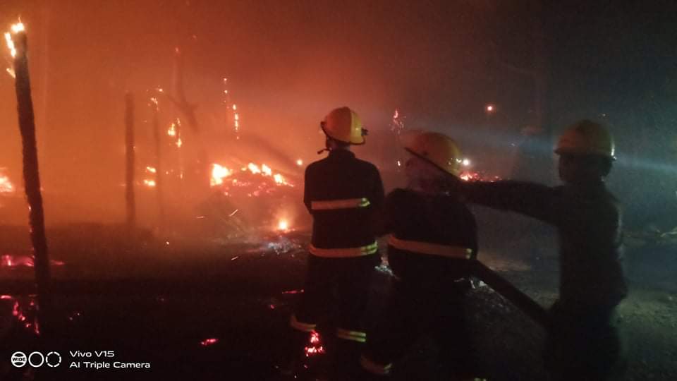 Based on a phone call about the fire, local firefighters rushed to the scene of fire that started at about 11:20 p.m. on 11 May. The fire was brought under control fifty minutes later and was completely put out about an hour later by the firemen with the use of four fire engines and four water tankers. The fire is believed to have started from ember in the kitchen and spread nearby houses.