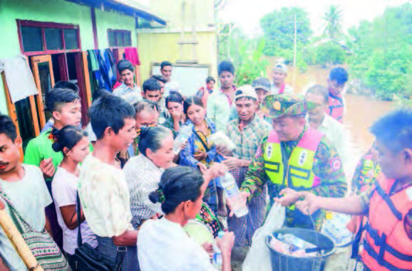 Tatmadaw personnel, members of the Myanmar Police Force, firefighters, local authorities, and social welfare groups have been actively engaging in these rescue and relocation efforts. Additionally, food and other essential supplies are being distributed to the flood-affected populations. Cleanup operations are also being conducted in areas where floodwaters have receded, clearing debris and fallen trees to restore access to roads and bridges.