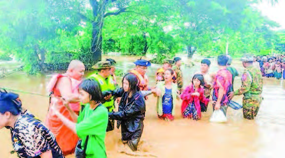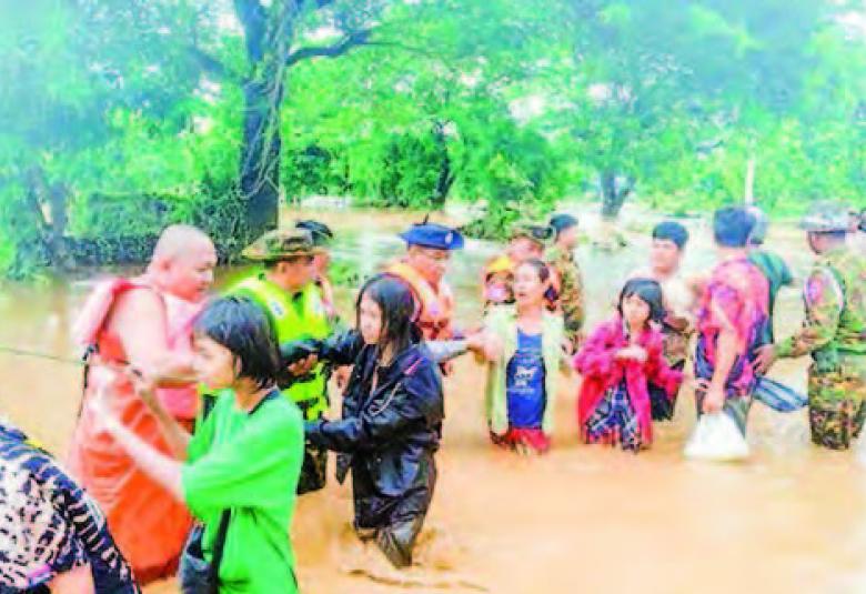 Flooding occurs due to continuous heavy rainfall in the Nay Pyi Taw Council Area and several states and regions, causing rivers and streams to overflow.