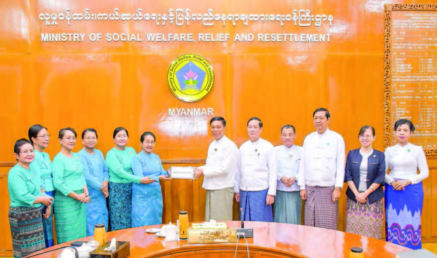 The donation ceremony for regions affected by flooding from Typhoon Yagi was held yesterday morning at the meeting hall of the Ministry of Social Welfare, Relief and Resettlement. Union Minister Dr Soe Win accepted the cash donations and delivered an appreciation speech.