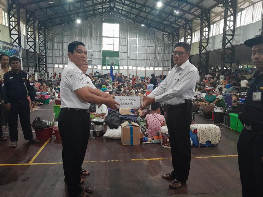 Kayin State Real Estate Services Association donated K 1.00 million for flood victims from three relief camps. The donation was accepted by U Saw Tun Aung, Minister of Social Affairs of the Kayin State Government and handed over to victims of floods in the relief camps.