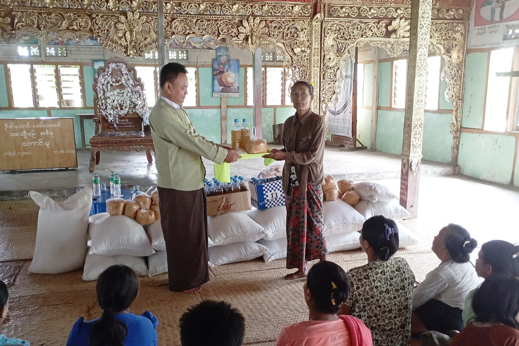 As part of the relief program, each household received six baskets of rice, one viss of edible oil, one viss of gram, and 18 packets of salt.— U Kyaw Zayyar Win (IPRD)