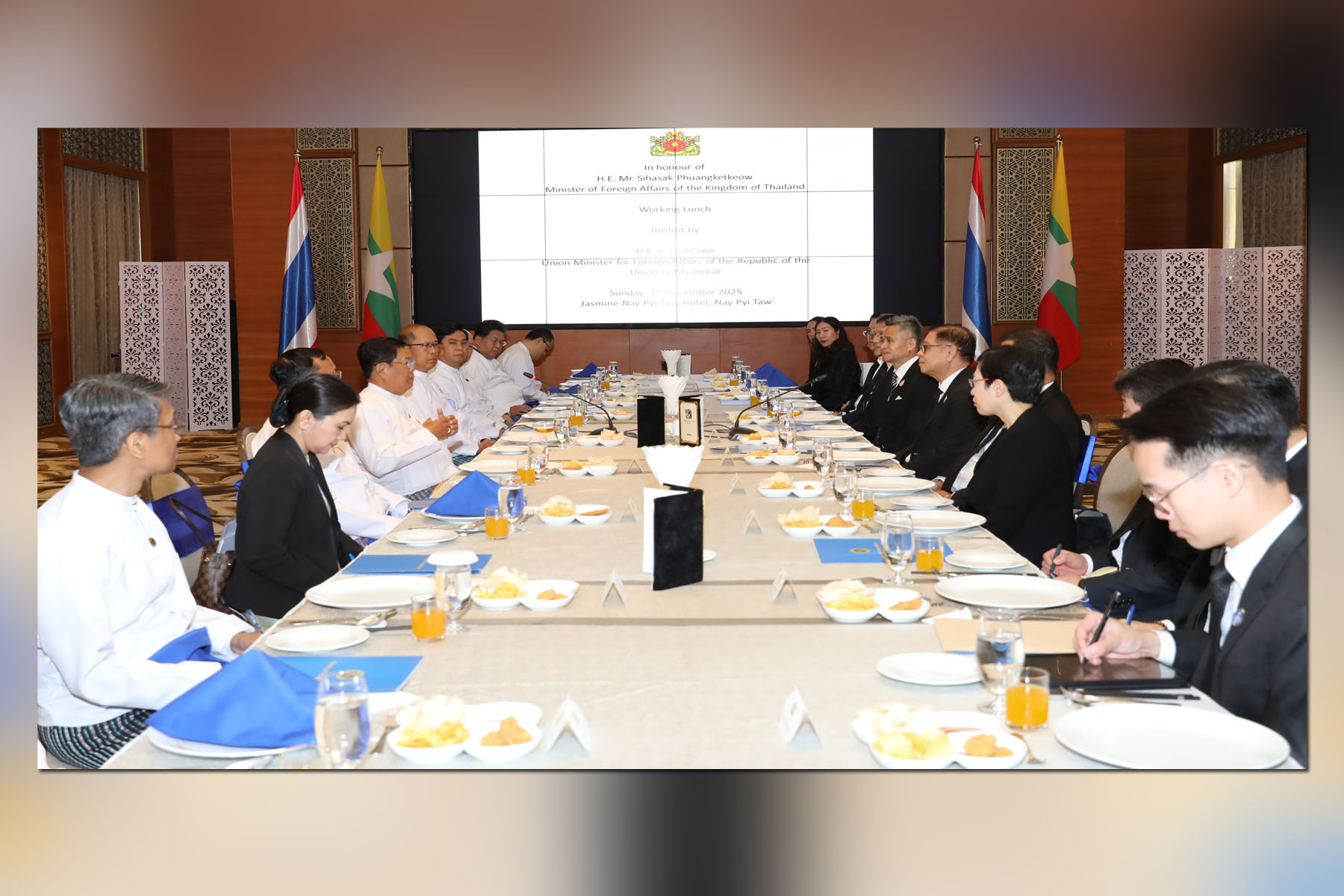 UNION Minister for Foreign Affairs of Myanmar U Than Swe met Minister of Foreign Affairs of Thailand Mr Sihasak Phuangketkeow, who paid a one-day visit to Nay Pyi Taw yesterday. The Union Minister hosted a working lunch to the Foreign Minister of Thailand and his delegation at Jasmine Nay Pyi Taw Hotel.