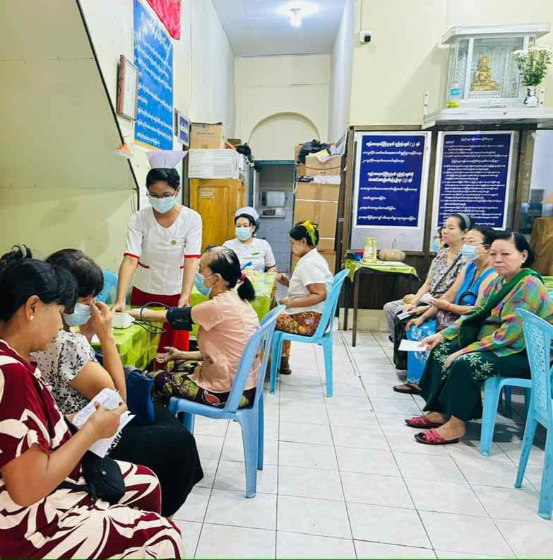 The Lanmadaw Township Public Health Department in Kyauktada District, Yangon Region, provided free healthcare services this morning to local residents suffering from diabetes, hypertension, and coronary heart disease.