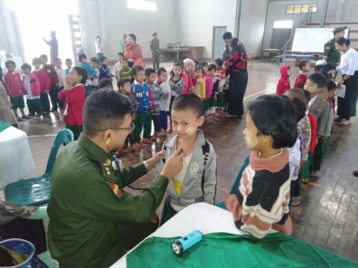 Medical team led by Brigadier General Kyi Taik, Deputy Principal of Army Combat Forces School (Bayintnaung), Southern Command, provided free medical treatment to students at a stadium in B.E.H.S in Tan Daung Gyi, Kayin State, this morning.