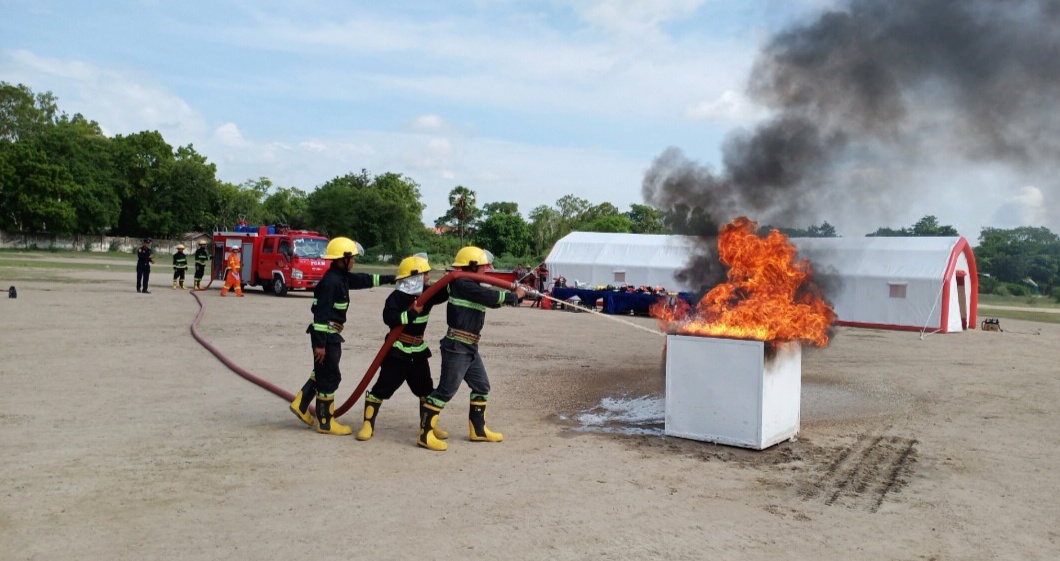 At first, the commander of the Sagaing Region Fire Services Department U Min San Aye gave a speech and Assistant Director of the Shwebo fire brigade U Aye Myint disseminated knowledge about the risks of fire. Next, firefighters explained fire safety measures and demonstrated how to use fire extinguishers when a fire breaks out in the area. Afterwards, demonstrated how to use fire extinguishers and conducted the first aid drill by using fire engines, water tankers and fire extinguishers.