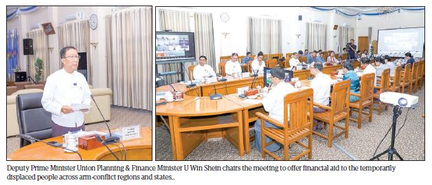 UNDER the guidance of State Administration Council Chairman Prime Minister Senior General Min Aung Hlaing, the government employees and families, and people, who temporarily fled their respective regions and states due to armed conflicts and terrorist attacks, will be offered cash assistance using National Natural Disaster Management Fund, said Deputy Prime Minister and Union Minister for Planning and Finance U Win Shein, at the meeting to present financial assistance yesterday.